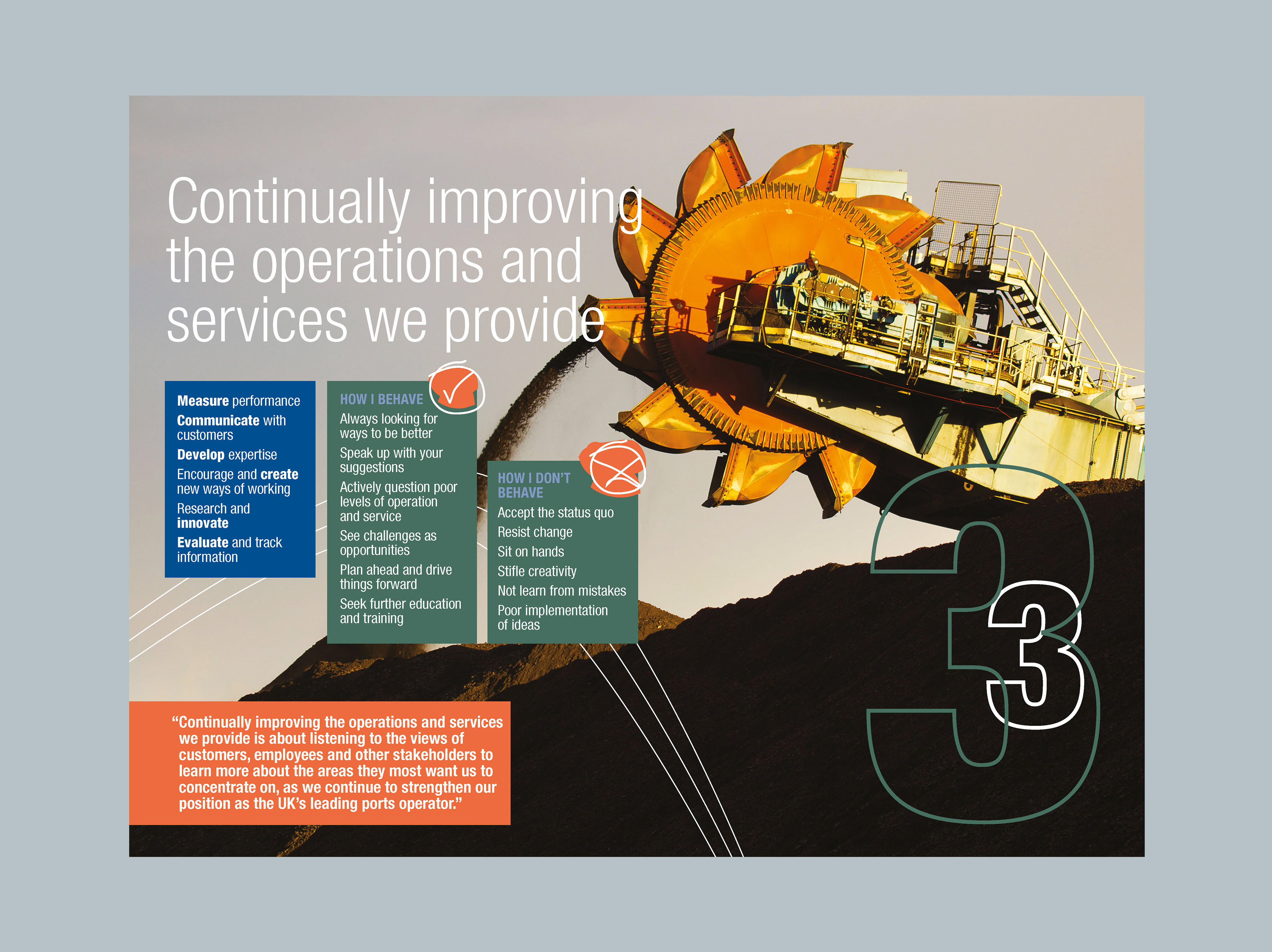 'From Good to Great' for Associated British Ports - an in-house branded initiative that included logo design, brochure and event material for staff to understand the company values and vision.