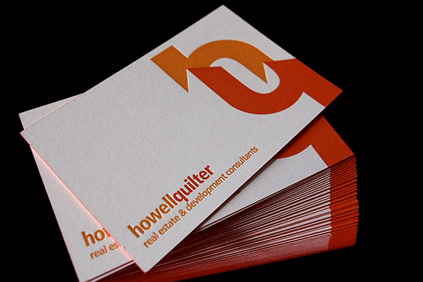 Letterpress business cards with a painted edge and heavy impression to the logo and text.