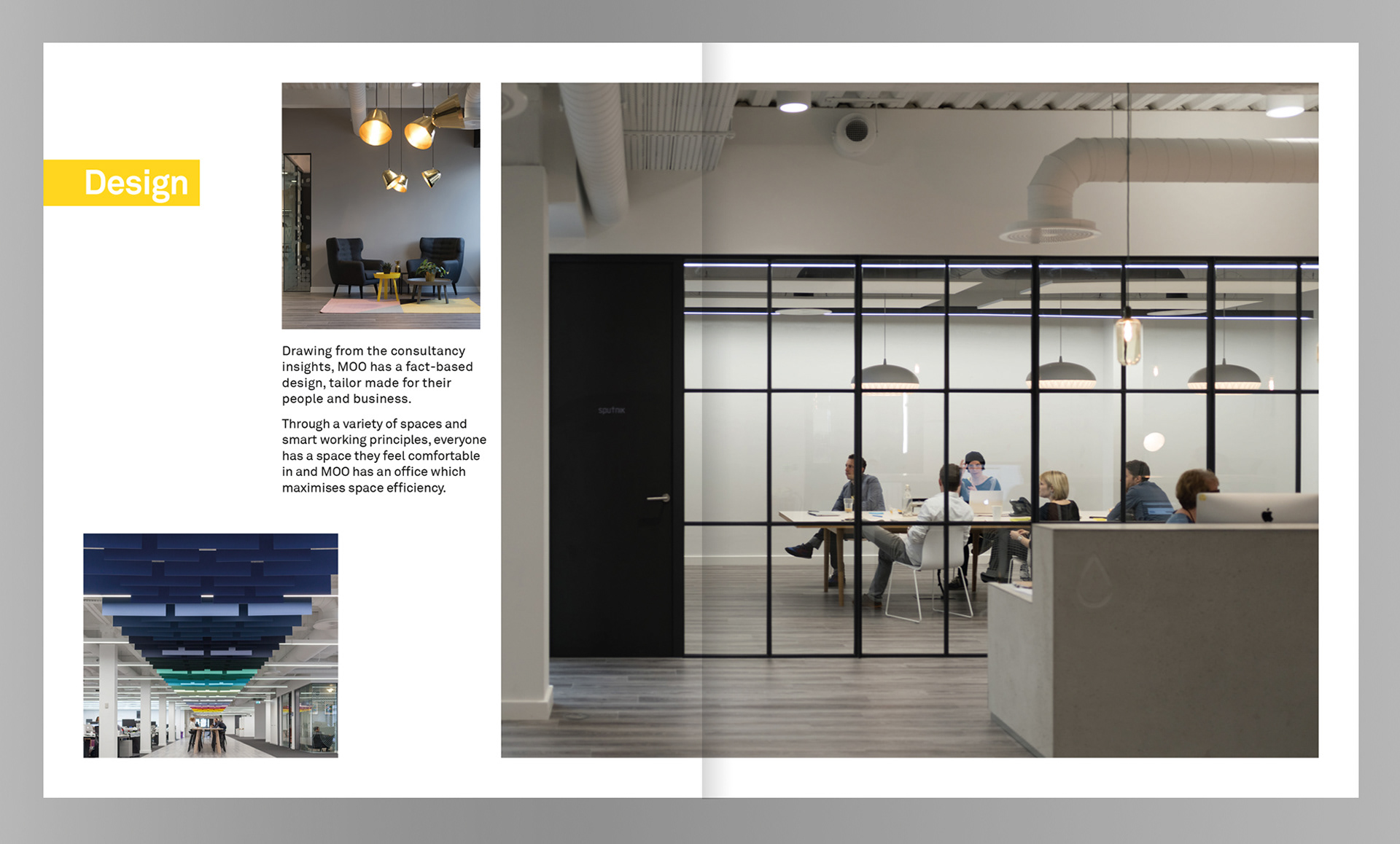 The Little Book of Moo has become the first in a series of small case study books to showcase an office relocation project by Peldon Rose. The book focuses on Moo's office relocation journey and comprises of 44 pages, PUR bound for durability and printed in low volume to provide a cost effective solution.